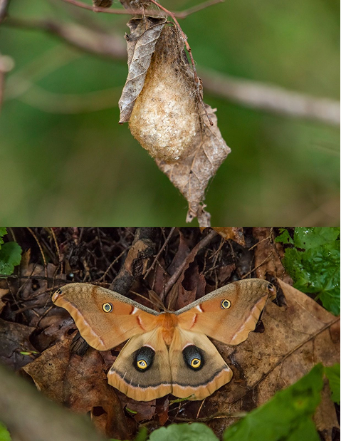 Check out this photo of a polyphemus moth cocoon – would you recognize it as a cocoon? One of our staff members found one just like it in their yard recently. Unique in their wrapping of their cocoons with leaves, these native moths blend in remarkably well with that leaf litter you’ve been eyeing in your front yard. All the more reason to leave it be for the time being.